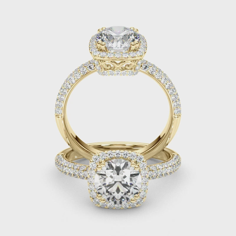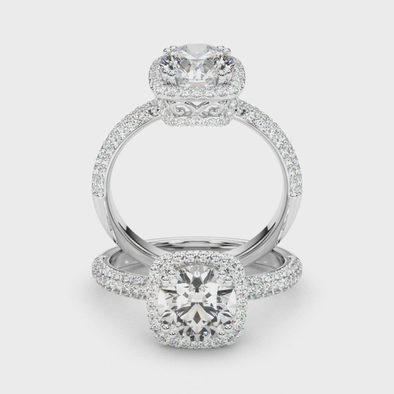 This beautiful 1.75ct round brilliant micropavé halo diamond engagement ring setting offers a classic frame for your diamond of choice. The certified IGI GIA lab-grown diamond of 0.45ctw is set in 14k white gold for a beautiful and durable finish. Experience the beauty of a certified diamond in an elegant setting.