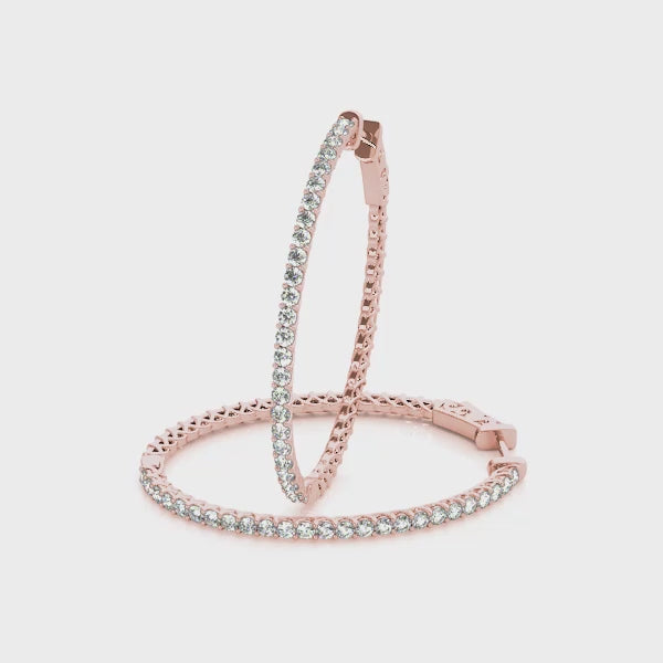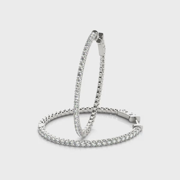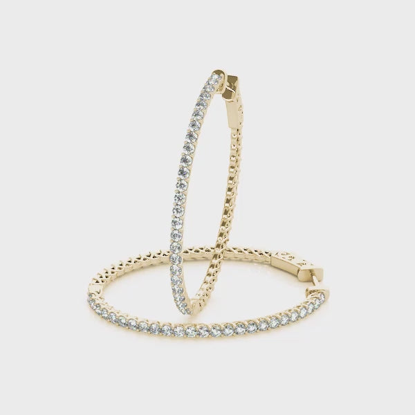 0.75 carat Round Diamond Oval Shaped Hoop earrings in and out set in 14K Gold