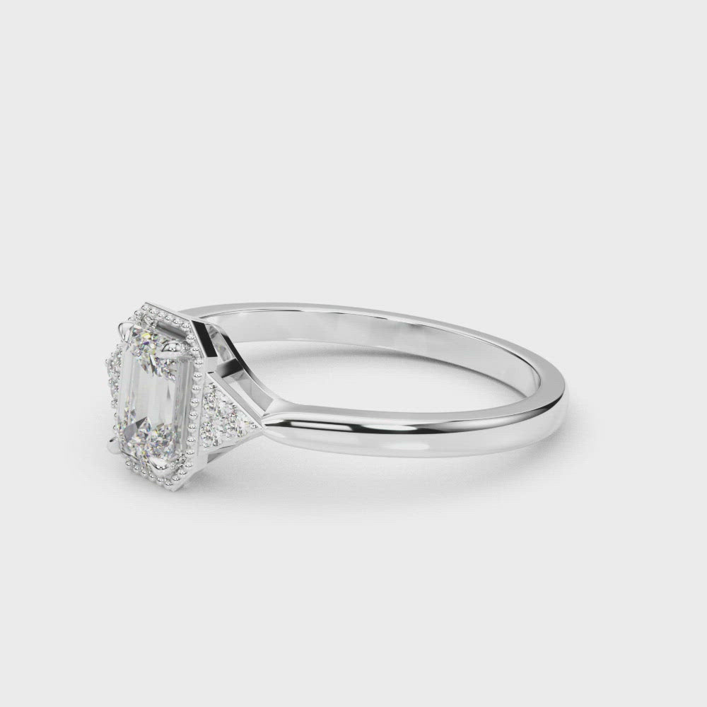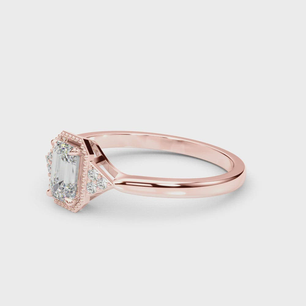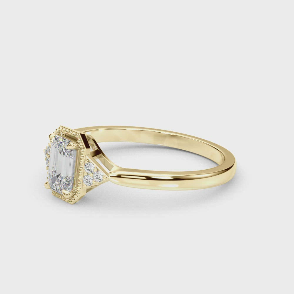 0.85 ct tw Emerald cut Vintage Diamond Engagement Ring Setting (0.10 ct tw) In 18k Gold