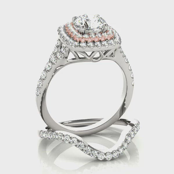 Unleash the brilliance of your love with a sparkling 1.00 ct tw Round cut Diamond Double Halo Engagement Ring Setting (1/2 ct tw) In 18k White Gold, masterfully crafted to showcase the perfect carat, color and clarity.