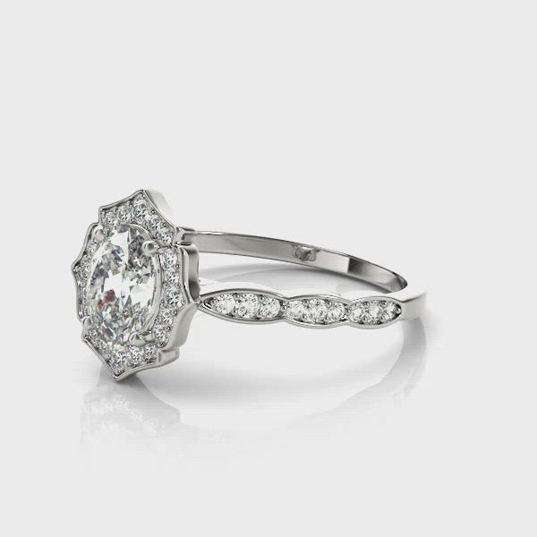 1.00 ct tw Round cut Diamond Halo Vintage Engagement Ring Setting (1/4 ct tw) In 18k White Gold Sale price$1,325.00