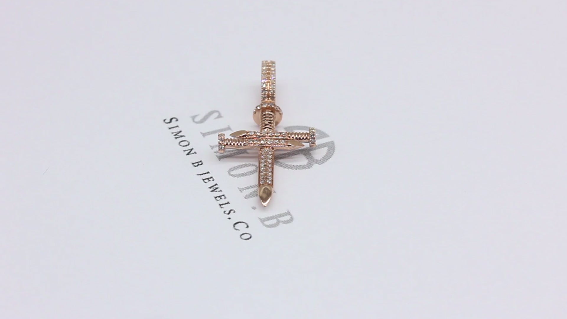 1/2 Carat F-VS Diamond Cross Screw Nail Pendant Solid 14k Rose Gold