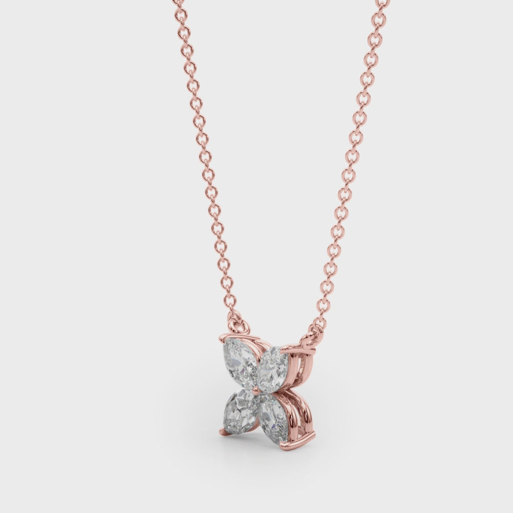 1.25 Carat Marquise cut Diamond Flower pendant Necklace in 14k Gold