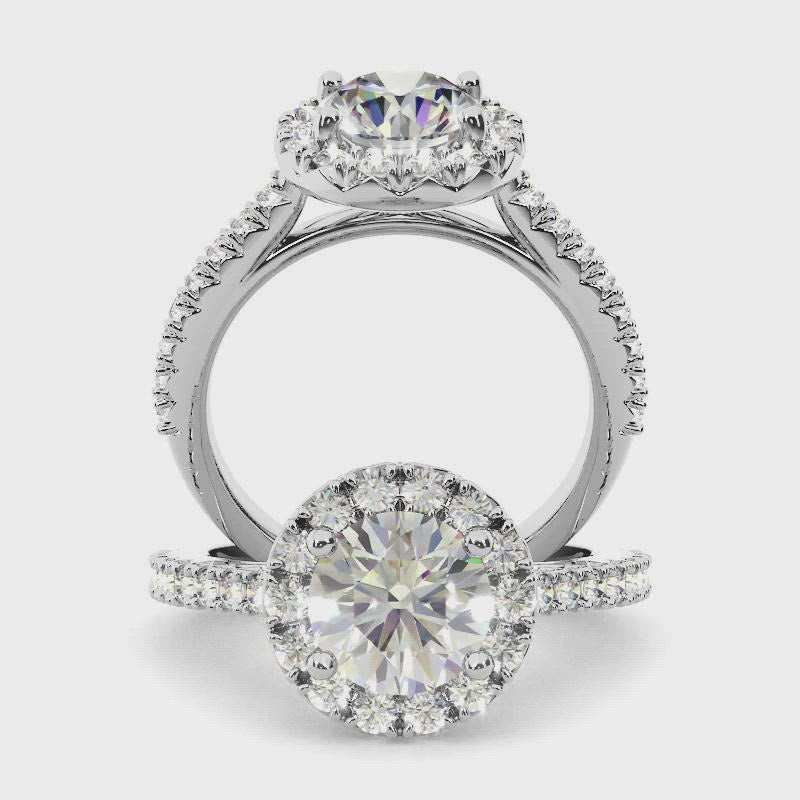 1.25ct Round Cut Halo Diamond Engagement Ring Setting (0.45ctw) In 14k Gold