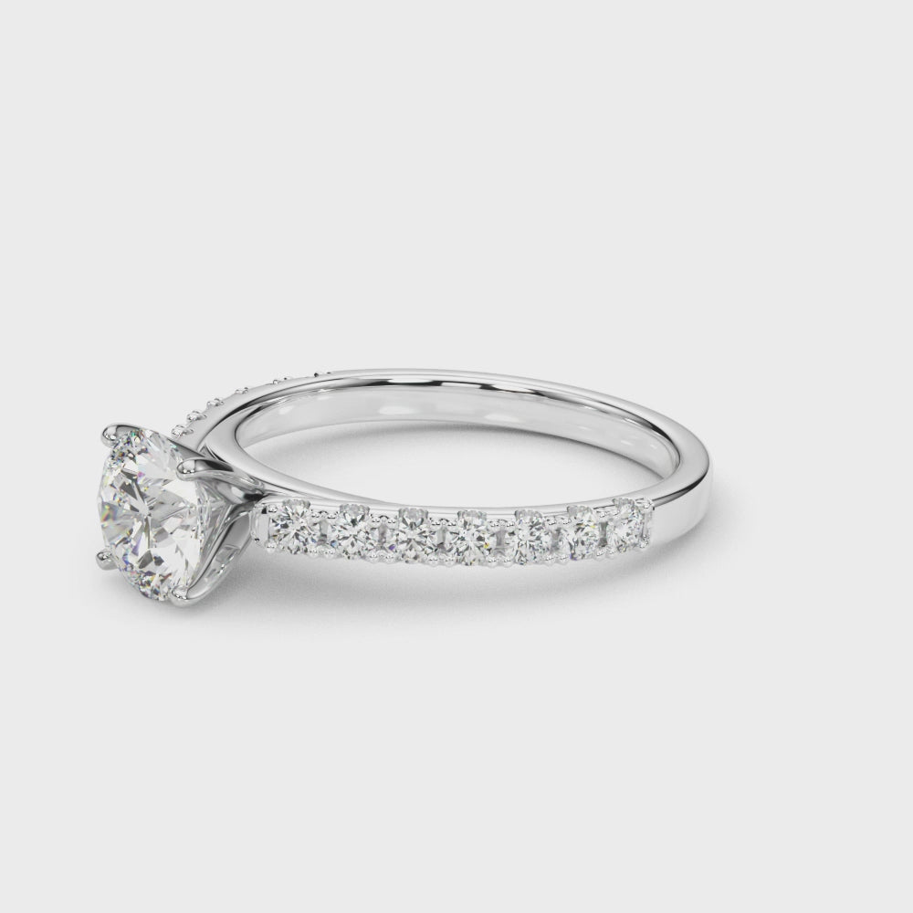 Indulge in the brilliance of a 1.50ct Round Brilliant Petite Micropavé Diamond Engagement Ring Setting, crafted with love and lab-created diamonds in exquisite 14k White Gold.