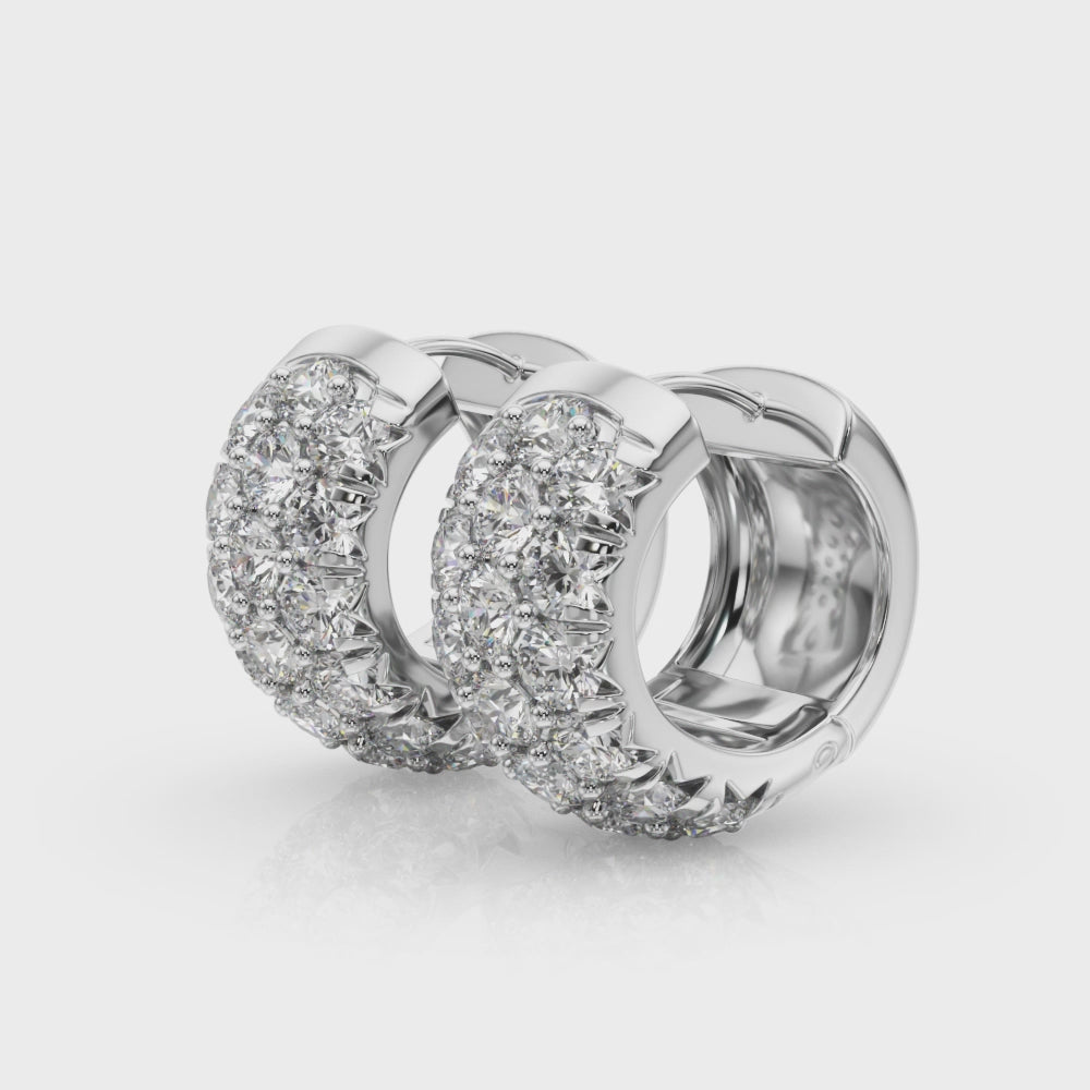 1.52 carat Round Diamond 3 Row Micro-Pave Huggie Hoop earrings set in 14K White Gold Sale price$1,199.00