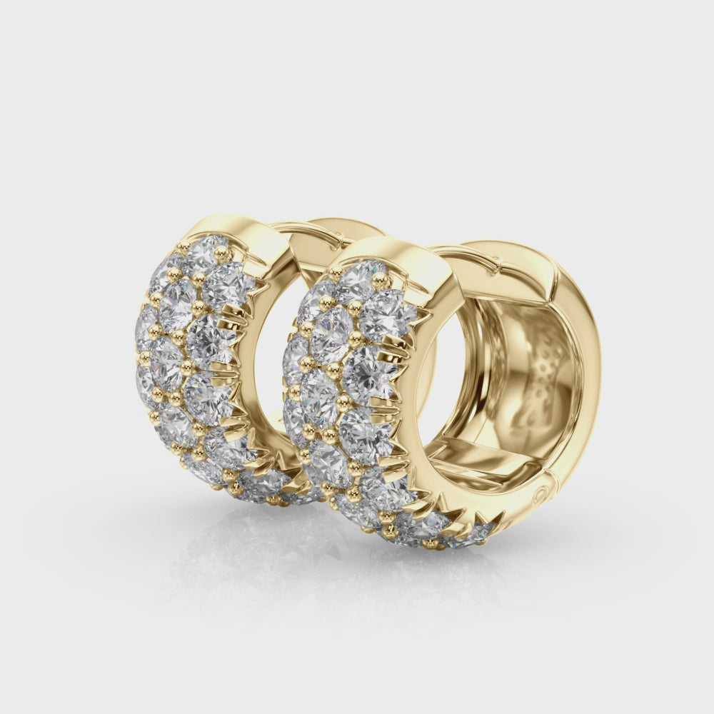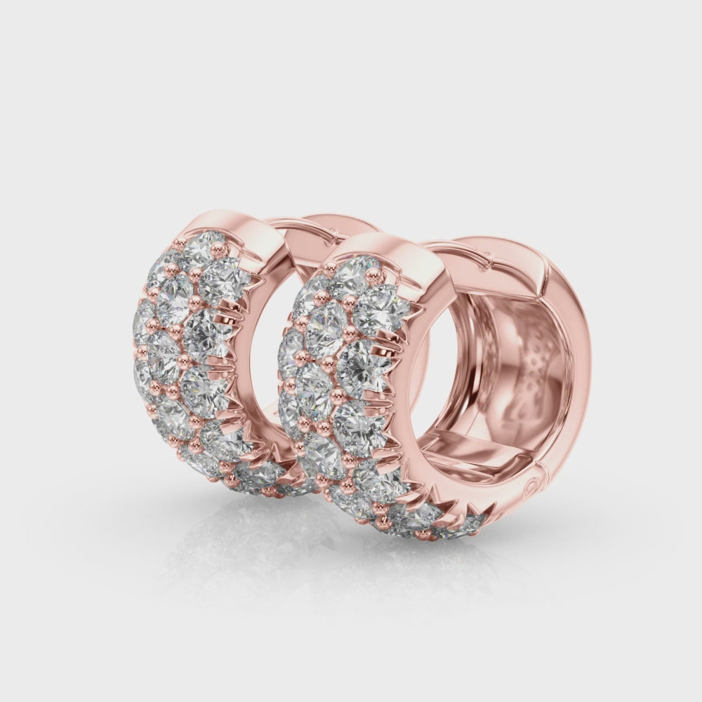1.52 carat Round Diamond 3 Row Micro-Pave Huggie Hoop earrings set in 14K White Gold