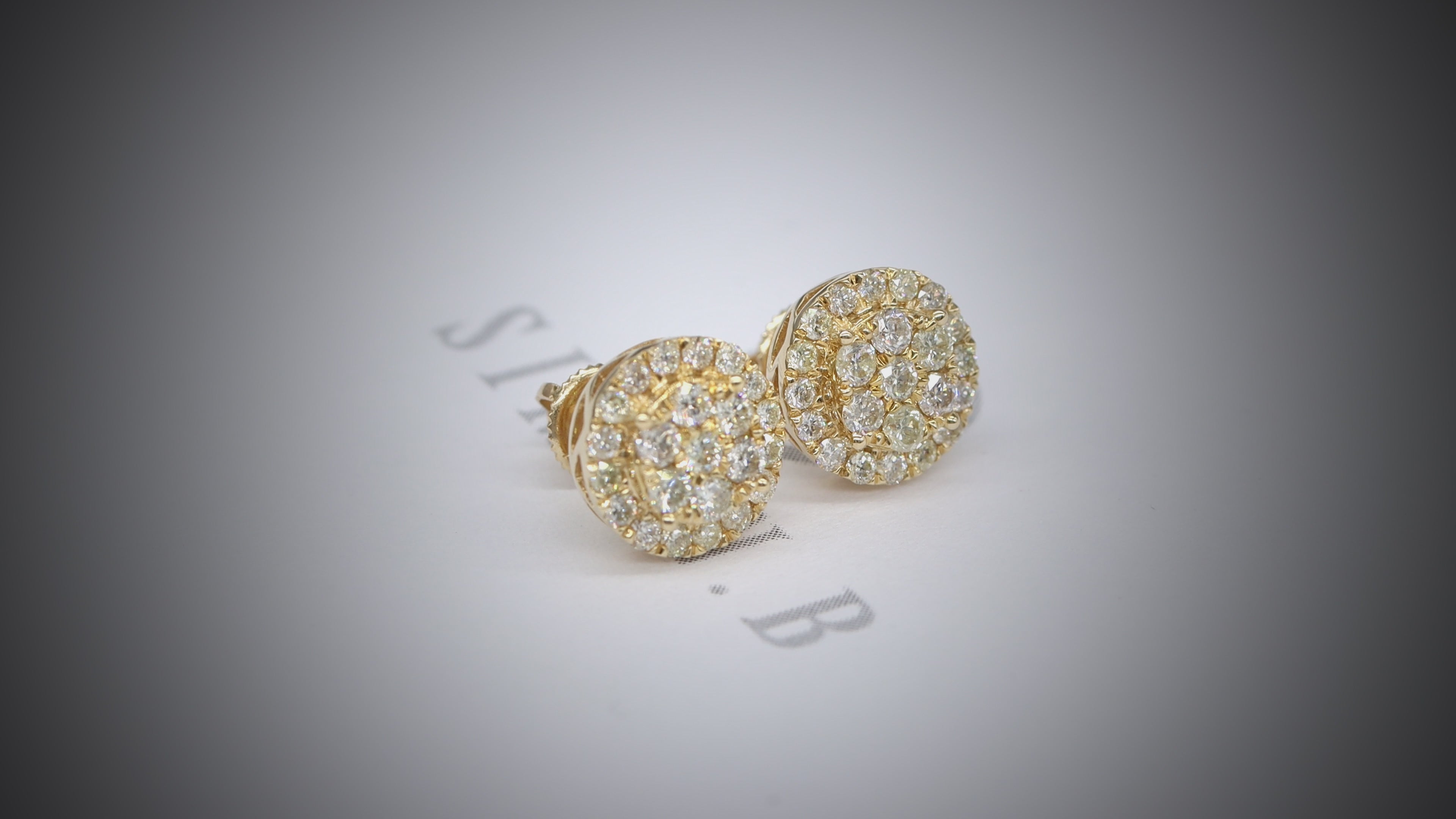 1.67 ctw Round Natural Diamond pave Cluster Earrings 14k Yellow Gold