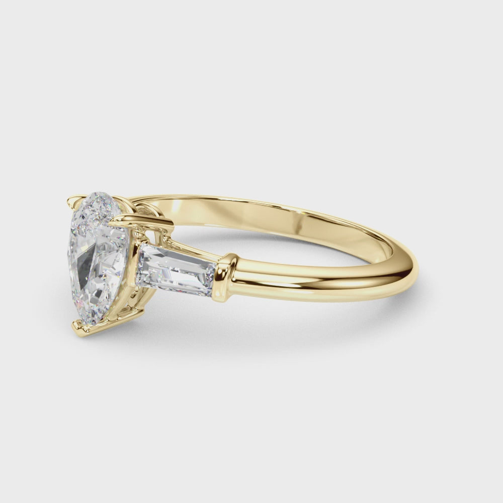 Experience elegance with this 1.70ct round brilliant tapered baguette three-stone diamond engagement ring setting in 18k white gold. Featuring a GIA or IGI certified diamond, it is custom made to order, allowing you to choose the perfect shape for the center stone. Contact us today for the best personalized service and unbeatable pricing on your dream ring.