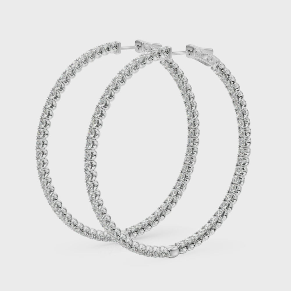 1.78 carat Round Diamond U-Prong Hoop earrings in and out set in 14K White Gold