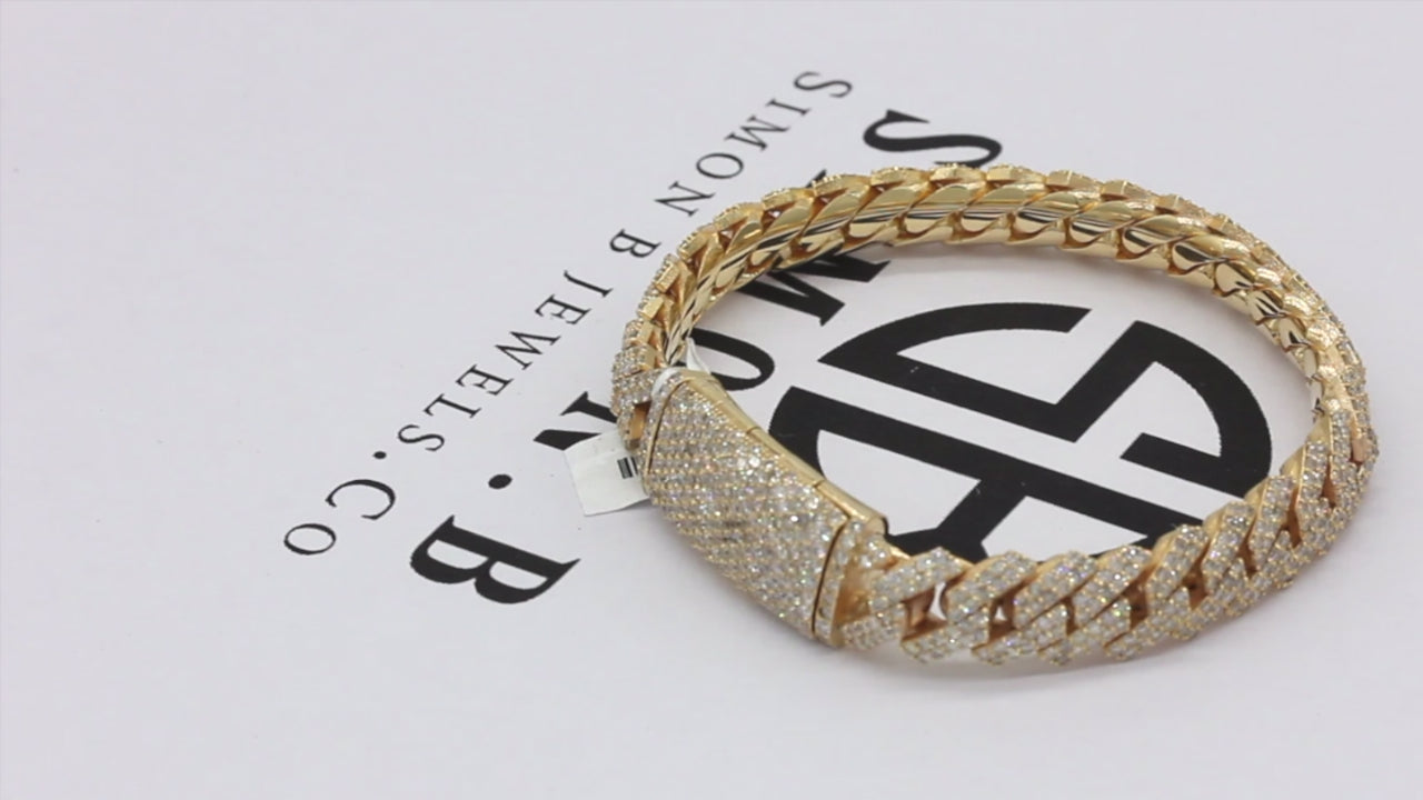 - 62 carat FVS diamond Cuban link bracelet, crafted from high quality 14k yellow gold for a luxurious finish