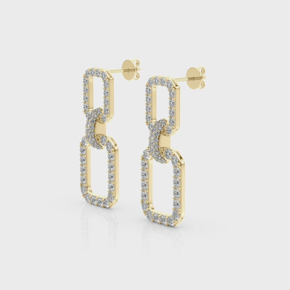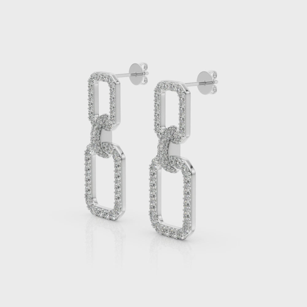 2.00 Carat F-VS Round Brilliant Micropave Square Link Earrings set in 14k gold