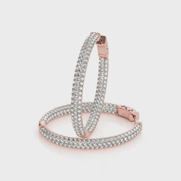 2.00 carat Round cut Diamond Round Pave Hoop earrings in and out 14K White Gold