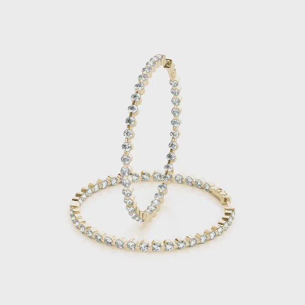 2.00 ct tw Round cut Diamond Round Hoop earrings in and out 18K White Gold