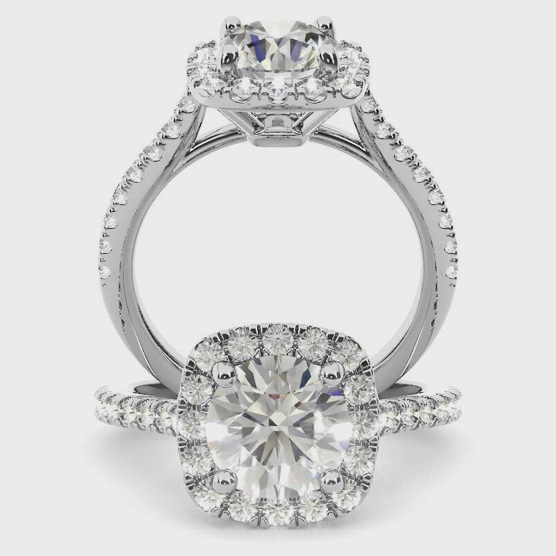 2.00ct Round Brilliant Micro-Pave Cushion Halo Diamond Engagement Ring Setting (0.50ctw) In 14k White Gold