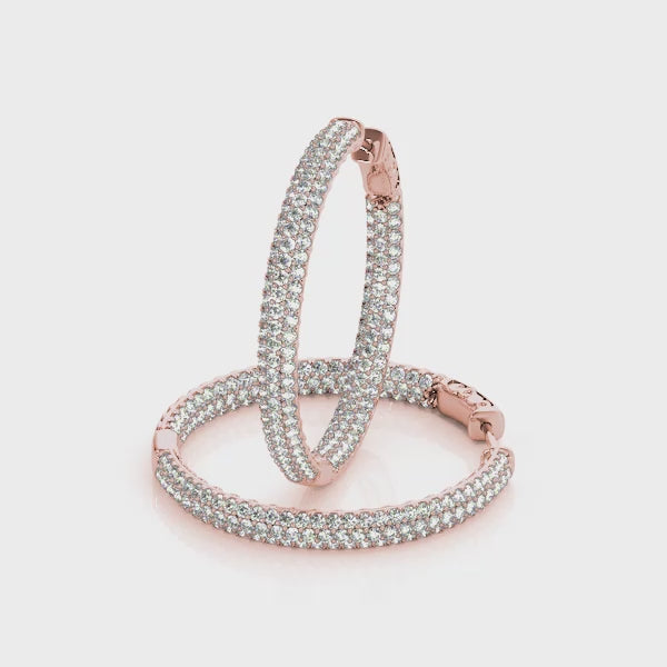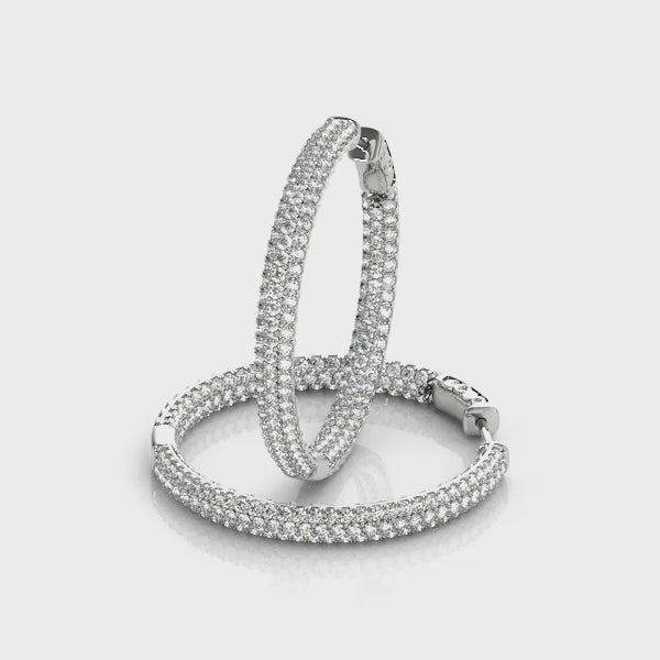 2.20 carat Round Diamond Micro-Pave Round Hoop earrings in and out set in 14K Gold