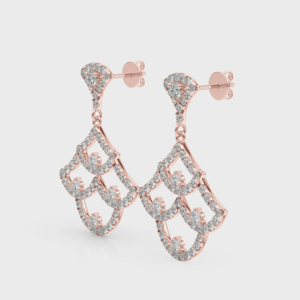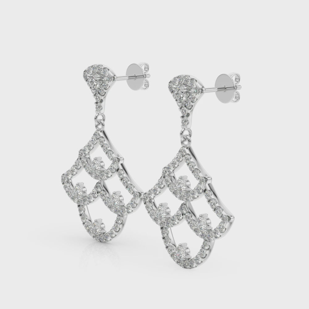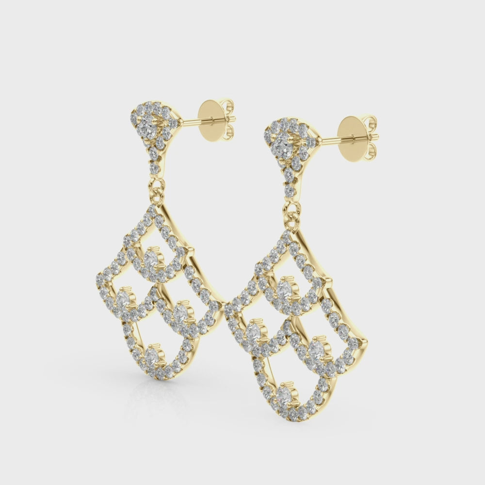 2.20 carat Round Diamond Micropave Chandelier Drop earrings set in 14K Gold