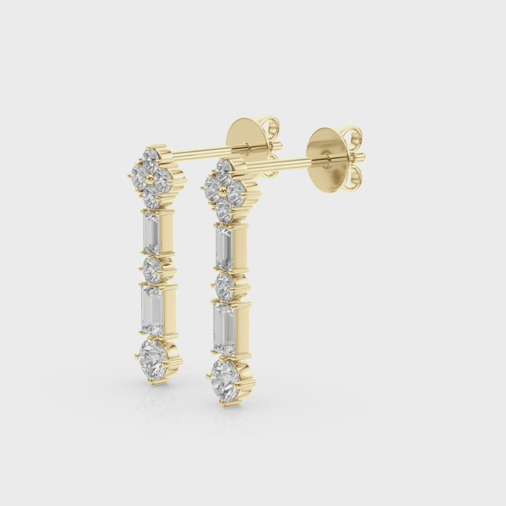 2.30 Carat Round Brilliant Baguette Alternating Drop Earrings set in 14k Gold