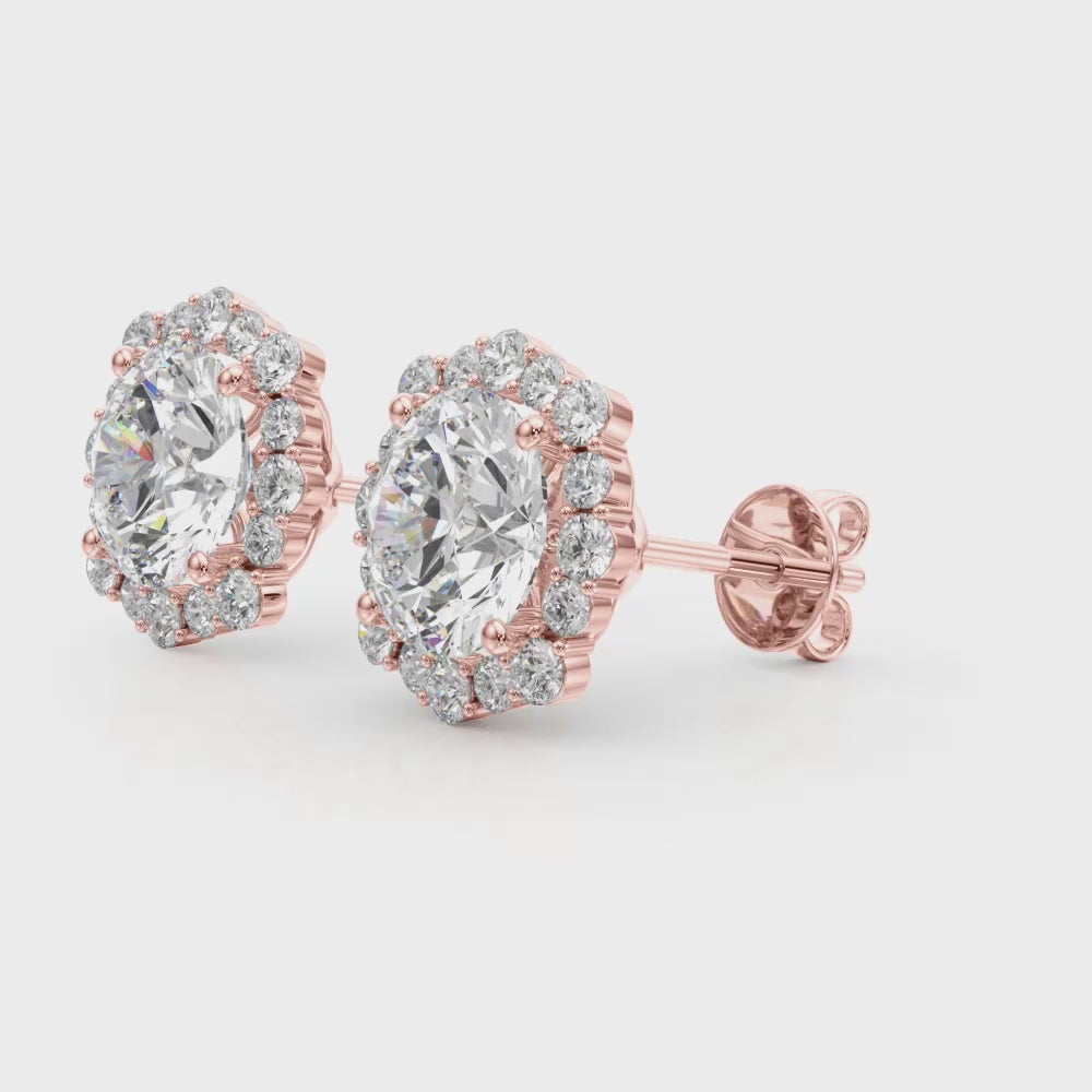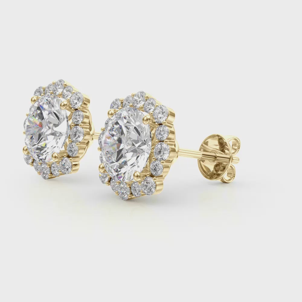 - 35 carat FVS halo diamond stud earrings, set in luxurious 14k white gold