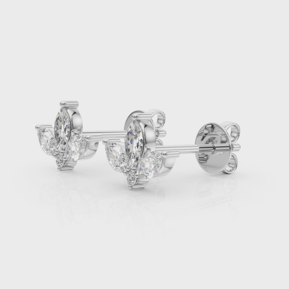 2.40 Carat Marquise shaped Diamond Flower Stud Earrings set in 14k Gold