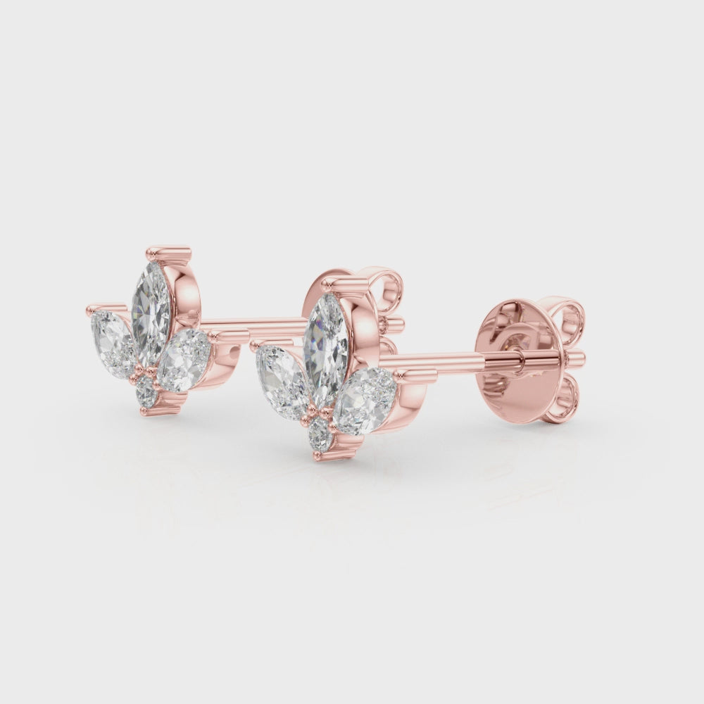 - 40 Carat Marquise shaped Diamond Flower Stud Earrings