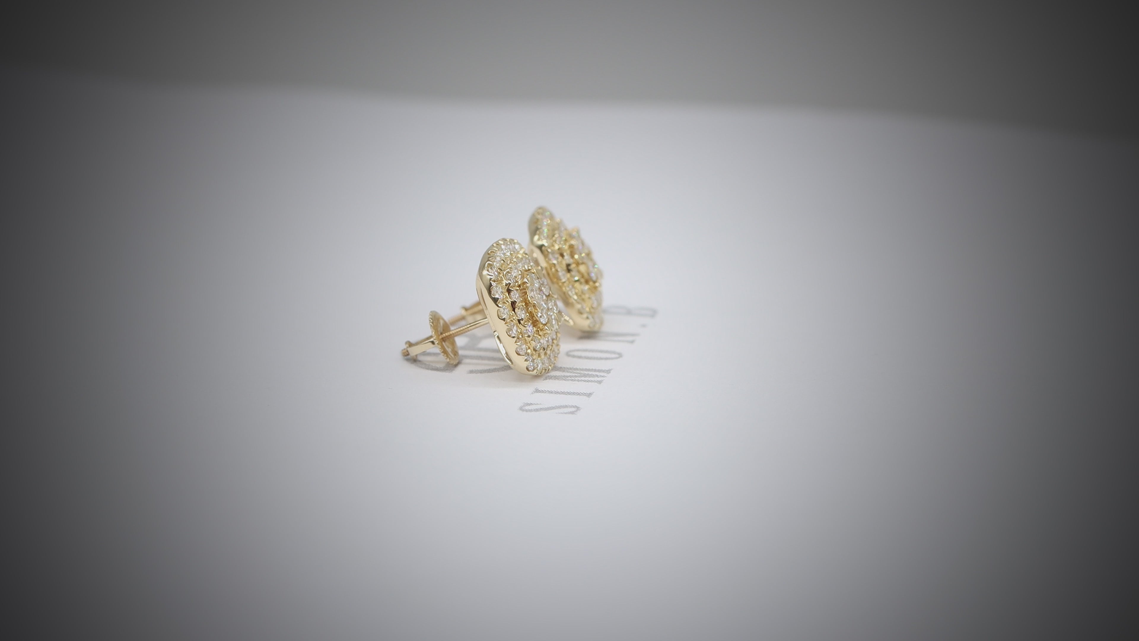 2.61 ctw Round Natural Diamond Pave Cluster Earrings in 14k Yellow Gold