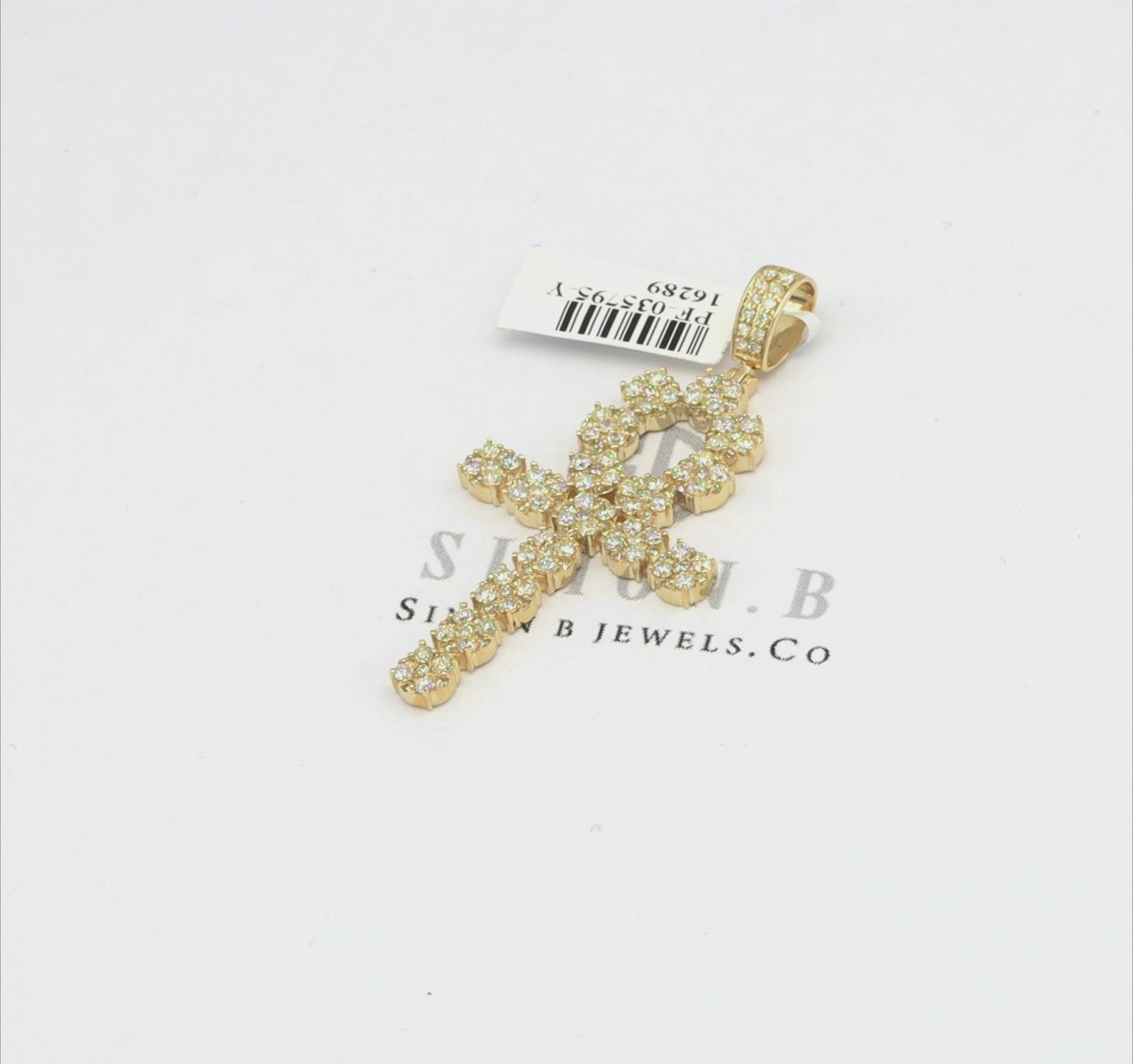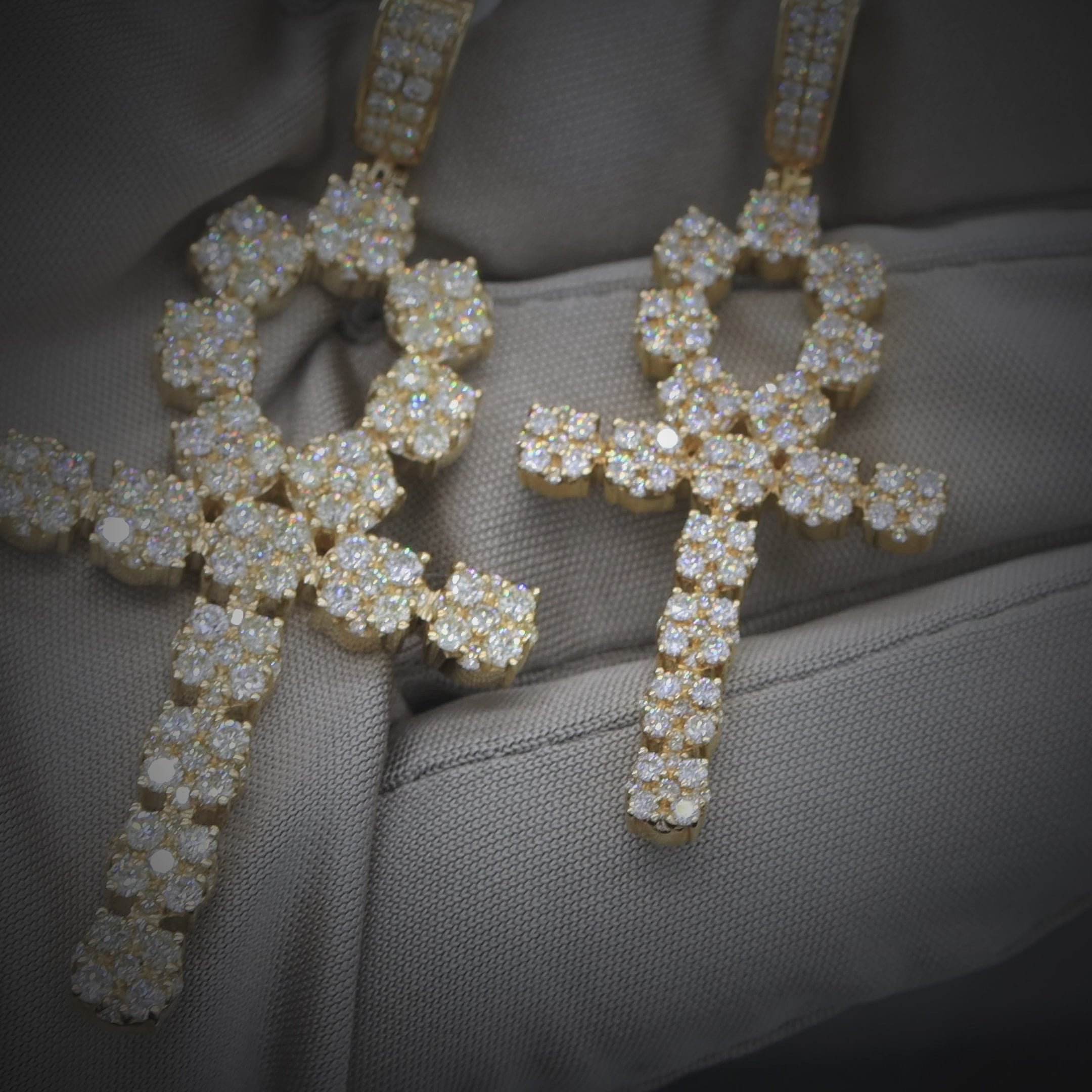 3.85 Carat F-VS Natural Round Diamond Cross Pendant Solid 14k Gold