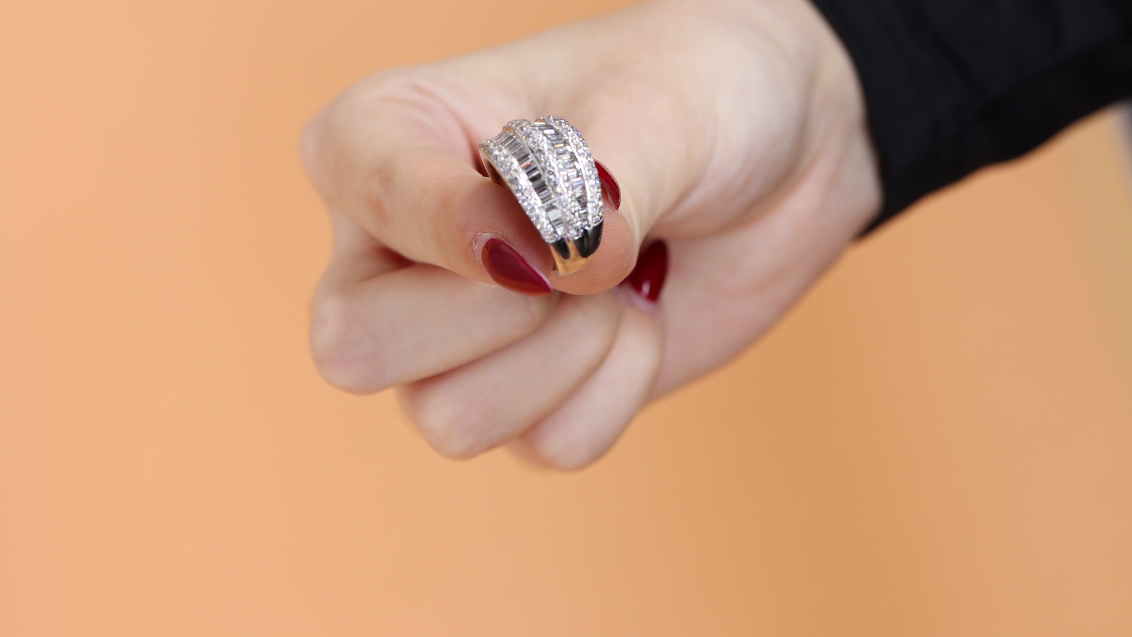 LeVian Diamond Ring 18k white Gold round-cut pave channel set with baguettes